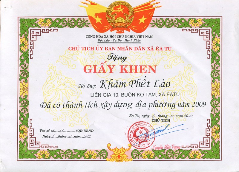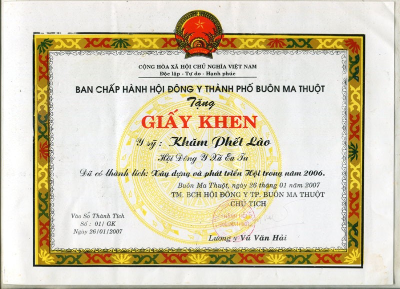 Bằng khen Chính phủ và các ban ngành tặng cho Amakong và Khăm Phết Lào